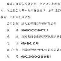 我公司因業務發展需要,變更公司名稱為:遠大工程項目管理有限公司,現已將公司基本賬戶變更完畢,從即日起收款及開票信息按最新內...